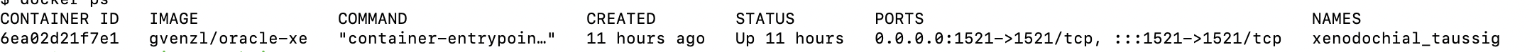 - docker run -e ORACLE_RANDOM_PASSWORD=yes -p 1521:1521 -d gvenzl/oracle-xe