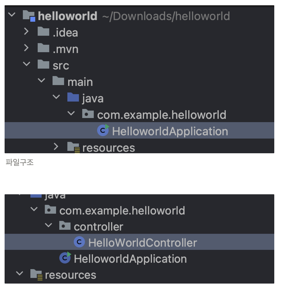 - 스프링 부트 안에 자바 언어로 만들어놓은 HelloWorldController에 hello라는 메소드를 크롬 브라우저가 네트워크를 통해 hello 메소드를 호출했다.
